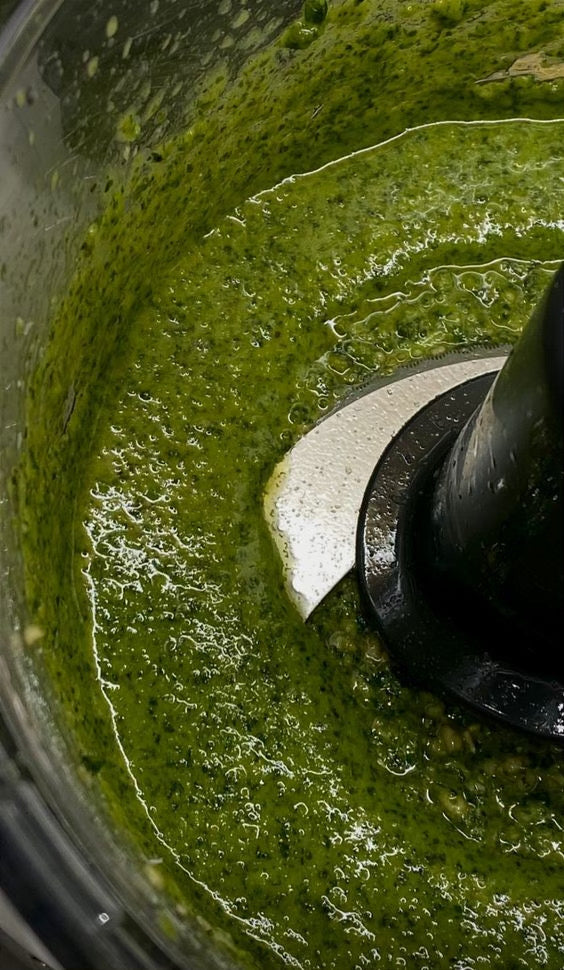 One day, I decided to tweak the recipe: I used equal parts apple cider vinegar and olive oil, and added spinach to make it more filling and nutrient-rich. I stopped taking the ACV pills and spirulina altogether—because this version of the pesto did it all.The flavor hit different. It was bright, clean, and deeply satisfying.